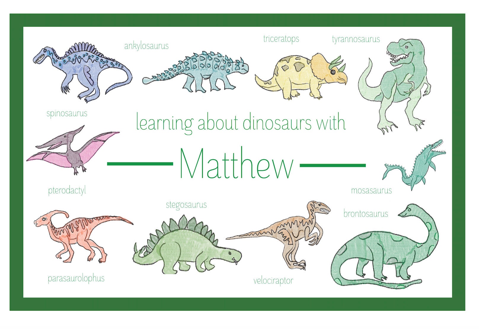 Personalised Dinosaur Placemat And Coaster Mia Pear Derbyshire